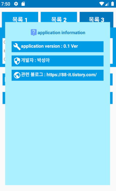 4. 어플 정보 클릭 시 -> 정보 띄워주기 디자인 + 작동