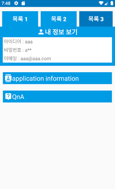 3. 내 정보 보는 창 만들기 + QnA + 어플 정보