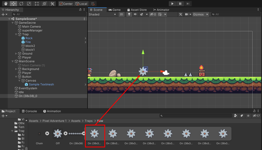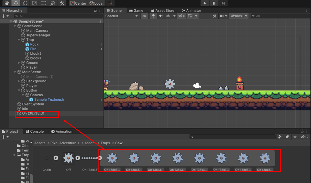 나머지 연속적인 그림을 모두 클릭해준 후 Hierarchy 에 있는 (위에 놔둔 해당 그림에 해당되는) Object에 끌어다가 놓아줍니다.