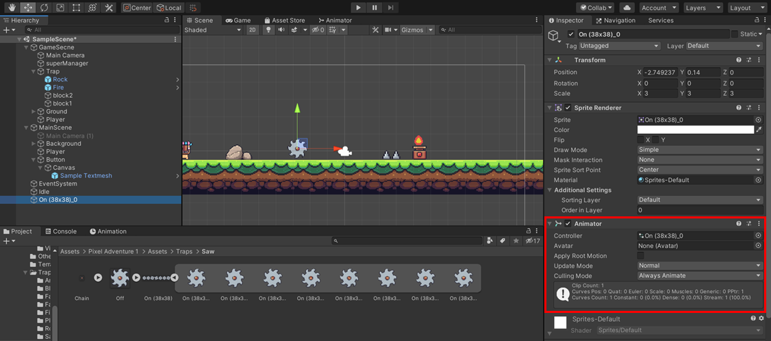 위에 창에서 저장을 누르셨다면 해당 Object의 inspector에 Animation 이 생긴 것을 확인할 수 있습니다.