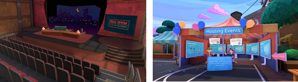 다양한 사람들과 vr을 이용하여 라이브 쇼, 모임, 수업 등 다양한 콘텐츠를 제공해준다.