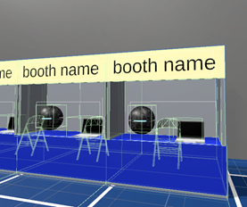 2. 부스 제작 : 유니티에서 제공되는 툴들을 이용하여 부스를 제작한 후 배치했다. 부스는 정보를 열람할 수 있는 컴퓨터, 궁금한 것에 대한 답변을 볼 수 있는 Chat 봇으로 이루어져 있으며 부스 이름은 시작하게 될 경우 부스 이름들을 받아와 바꿔주게 된다.