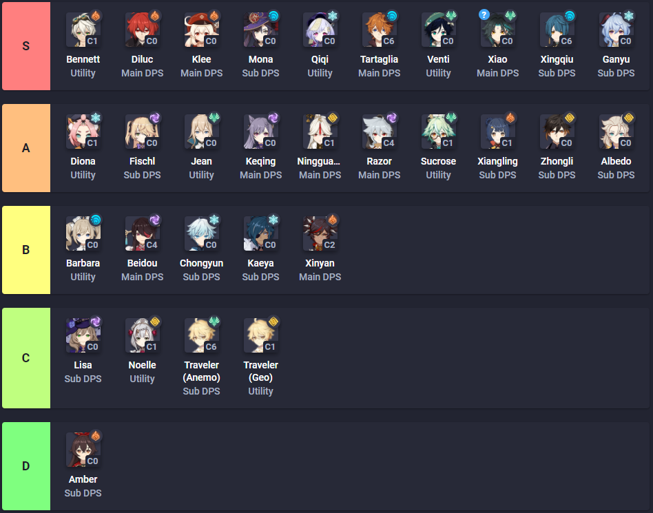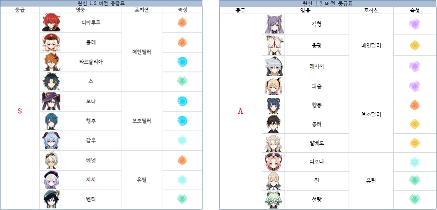 그 다음으로는, 원신 캐릭터 티어표입니다.