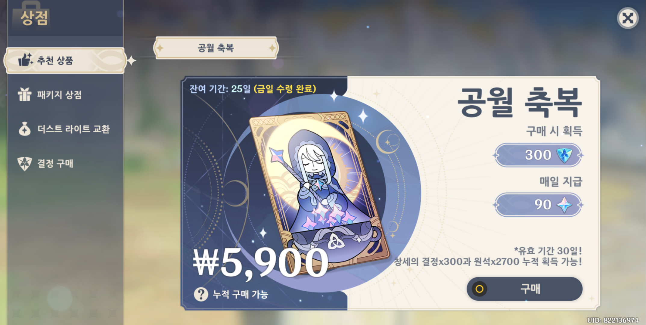 조금 더 팁을 드리자면, 만약에 현질을 하신다면 아래 공월 축복이라는 것을 추천드립니다.