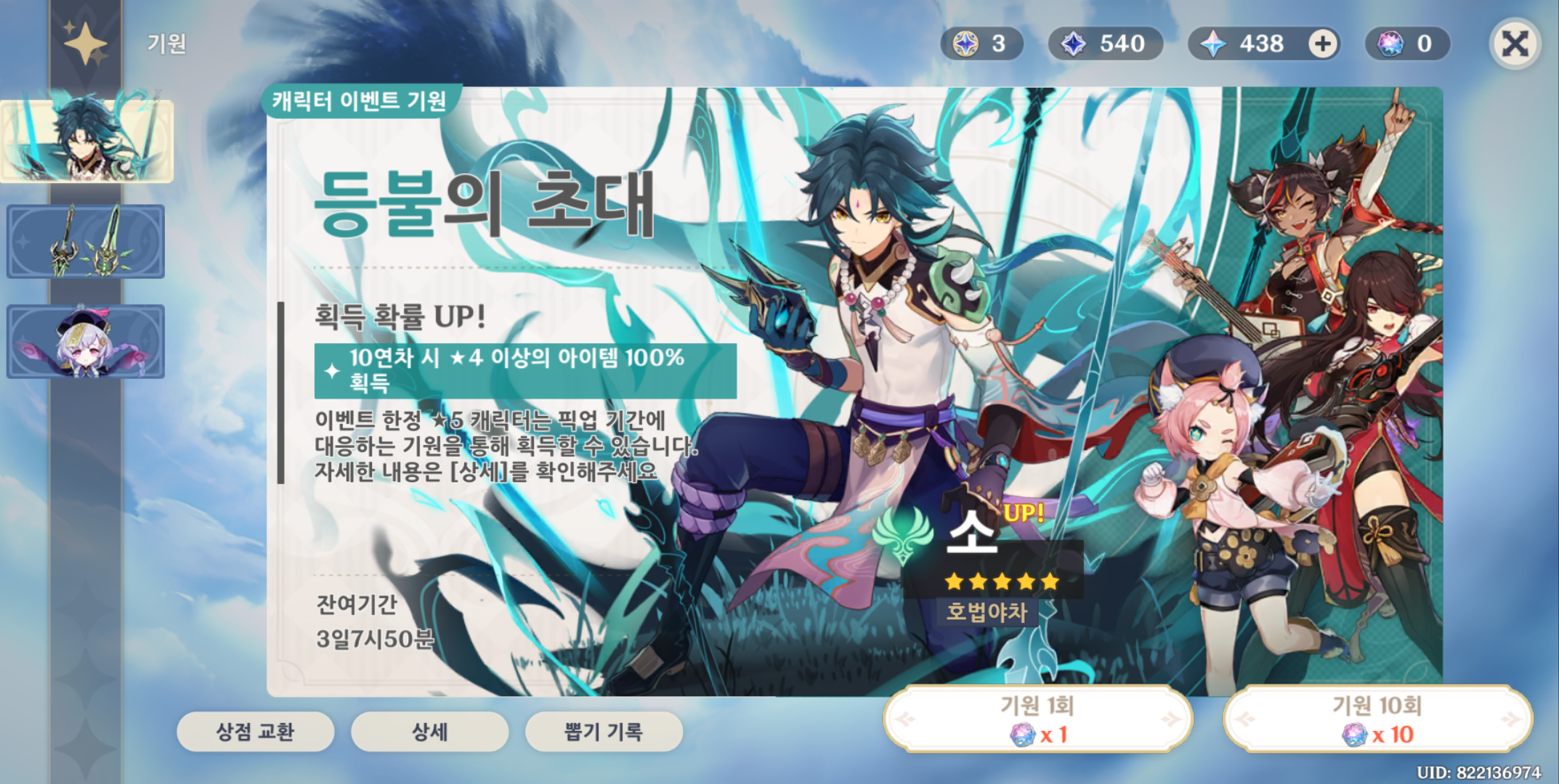 확률이 너무 극악인 뽑기 시스템. 이때까지 확률이 극악이라는 많은 게임을 해봤지만 이것만큼 극악인 게임은 처음 보는 것 같습니다. 하지만 그럼에도 뽑기를 포기하지 못하는 부분은 캐릭터를 너무 매력있고 강한 아이들을 키우고 싶다는 점. (다들 먼치킨 한 명 정도는 가지고 싶잖아요?ㅠㅠ) 원신 내에 유일한 저의 불만이라고 볼 수 있습니다.