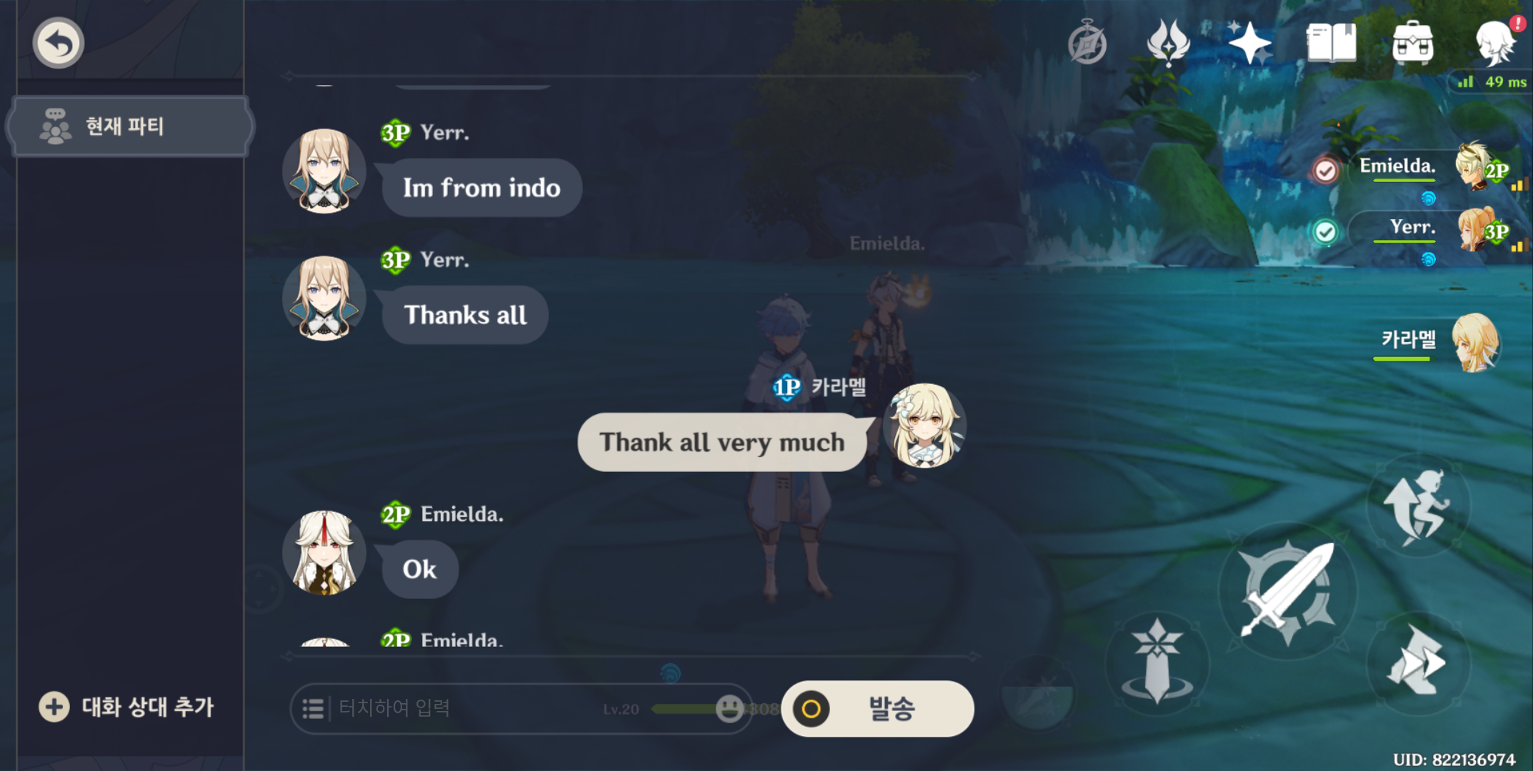 위와 같이 외국인들과 같이 대화하고 같이 플레이 할 수 있습니다. (고렙분들이 들어오면 대부분 도와주십니다. 착한 분들....)