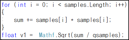 float v2 = Mathf.Sqrt(sum / qsamples);