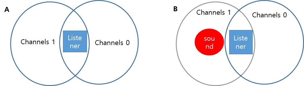 여기서 유니티는 3d 적인 sound 효과(예를 들면, 사용자 기준으로 왼쪽이 소리가 크게 들린다 / 오른쪽이 크게 들린다)를 주기 위해 A와 같이 두 가지 channels 을 사용하게 됩니다. 이 채널이 의미하는 바는 한 소리를 오른쪽, 왼쪽 나눈 소리입니다. 그렇기 때문에 유니티 내에서 정확한 RMS value을 channel 1, 0의 각각 값을 구해서 이에 대한 평균값을 가져야합니다.