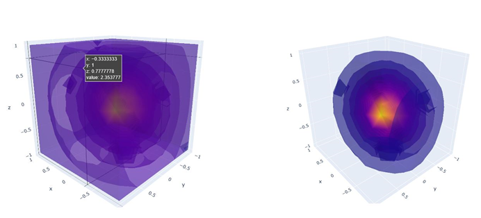 현재 : 유니티에서 10x10x10 으로 Listener를 이동시키면서 소리 값을 측정해 해당 데이터를 통해 pythoncharm 에서 위와 같은 결과를 구현하였으나 위와 같은 문제점을 나타남.