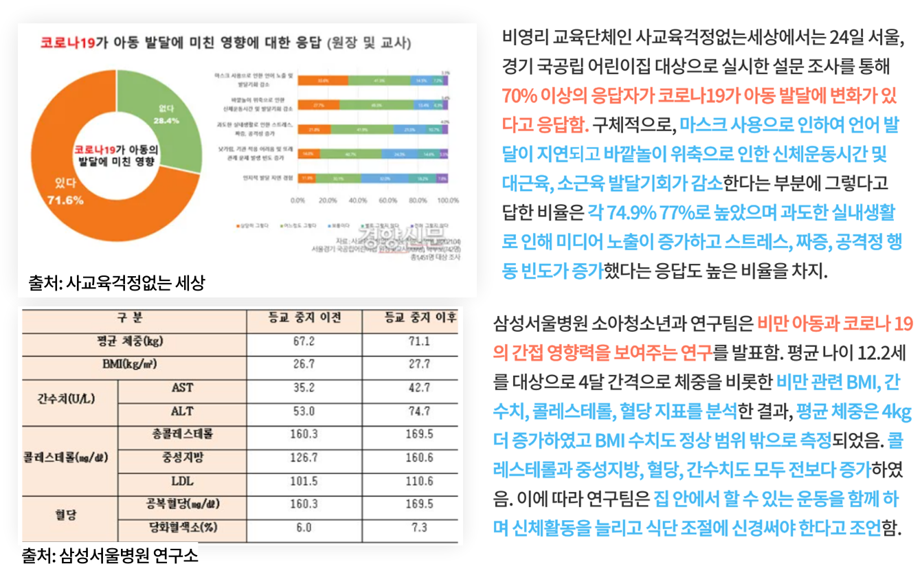 아동 교육 관련 문제점을 찾아서 3가지로 정리해본 결과 위에와 같은 부분들이 심각한 부분들이 있었으며, 관련 근거로 아래와 같은 내용을 찾게 되었습니다.