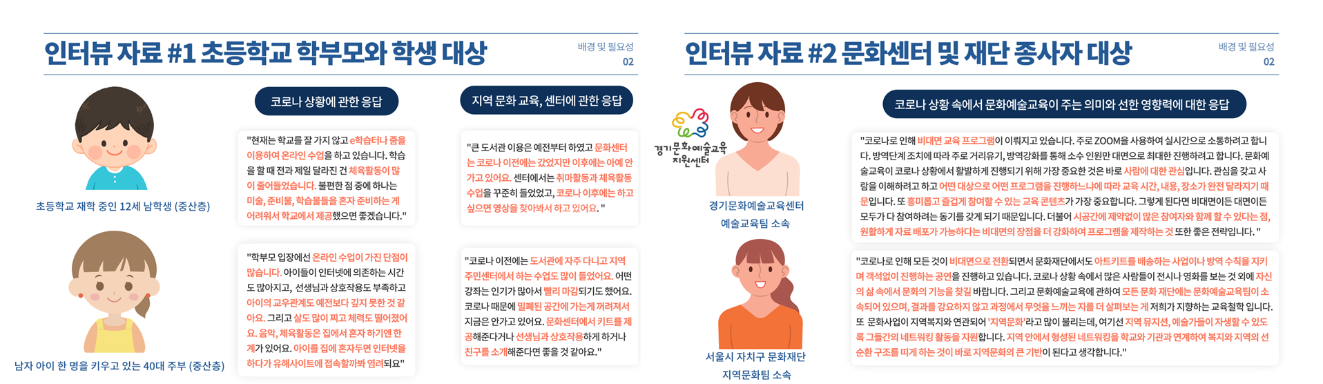 이 뿐만 아니라, 설득력과 다른 팀들과의 차별점을 두기 위해 다른 팀원들이 아이디어와 관련된 대상과 문화센터 등 재단 종사장과도 인터뷰를 진행했습니다.