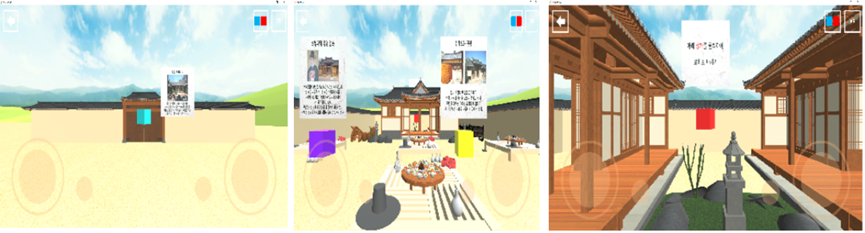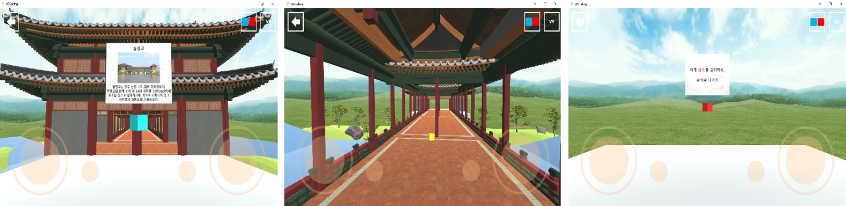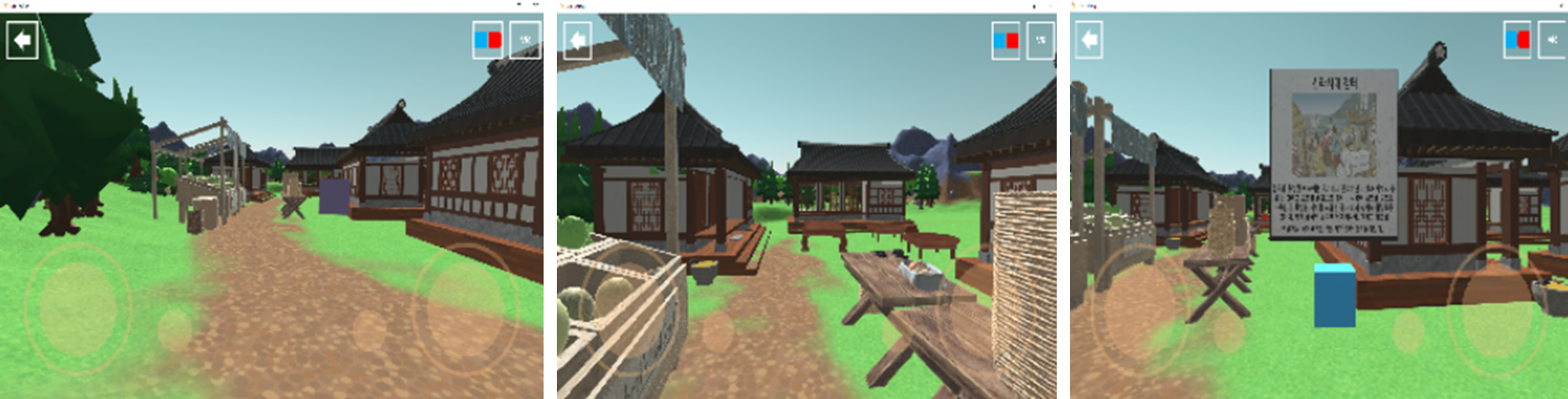 2) 메타버스로 구현해 직접 움직이는 콘텐츠로 지루하지 않게 체험할 수 있으며 간단한 상호작용을 통해 해당 문화재에 대한 다양한 정보를 볼 수 있어 실제 글로 찾아 보는 것보다 몰입도가 높아 만족도가 높을 것이다.