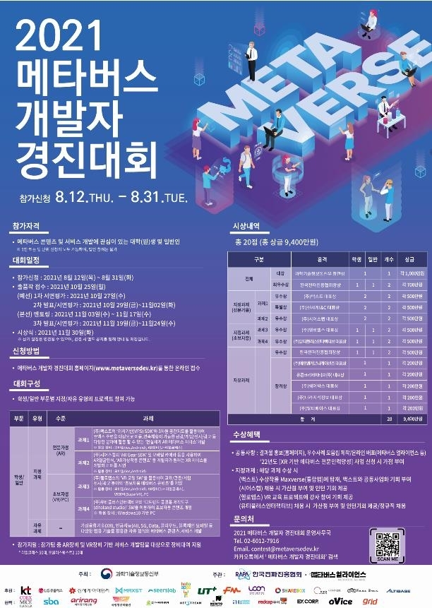 참여한 공모전 이름은 "2021 메타버스 개발자 경진대회"으로 아래 공모전 포스터를 참고할 수 있습니다.