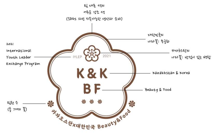 2021 International Youth Leader Exchange Program을 “IYLEP 2021”로 줄여서 넣었으며 KazaKhstan & Korea Beauty & Food 팀 이름을 “K&K BF”로 줄여서 넣음.