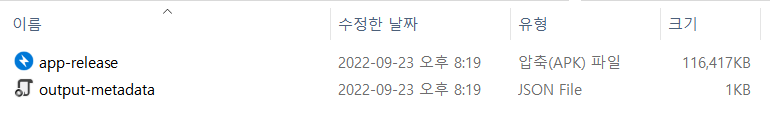 구문을 변경 후 "Sync Now" 클릭해 적용해준 후 다시 APK 만드는 것을 시도해본 결과 성공 문구가 뜬 것을 확인할 수 있었습니다. APK 만들어지는 위치는 [Workspace 명]\[Project 명]\app\release 로 아래처럼 만들어진 것을 확인할 수 있었습니다.