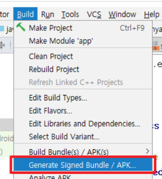 APK 만드는 방법은 프로젝트 상단 Build > Generate Signed Bundle/APK 를 누르면 됩니다.