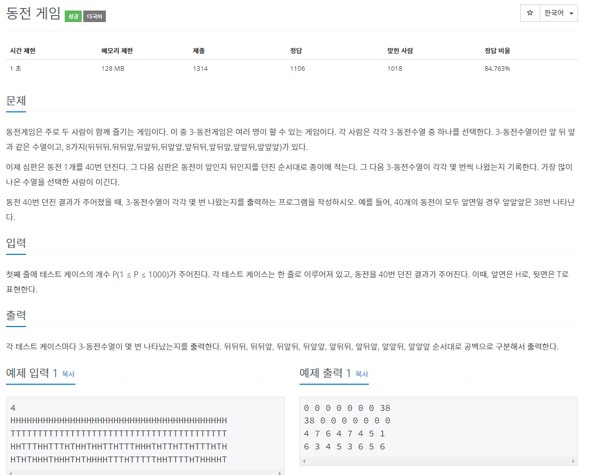 check = {"TTT": 0, "TTH": 0, "THT": 0, "THH": 0, "HTT": 0, "HTH": 0, "HHT": 0, "HHH": 0}