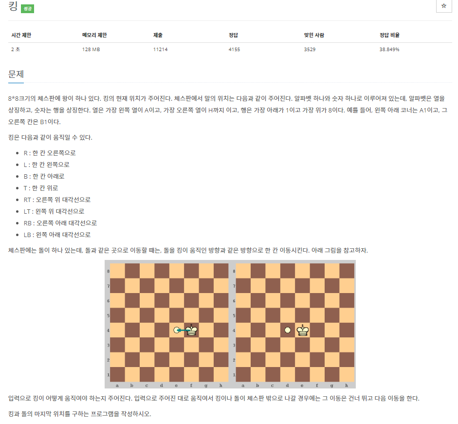 1. 돌이 킹이랑 매번 같이 움직이는 게 아닌 킹이 돌의 위치로 이동하게 되면 같이 이동해준다는 점