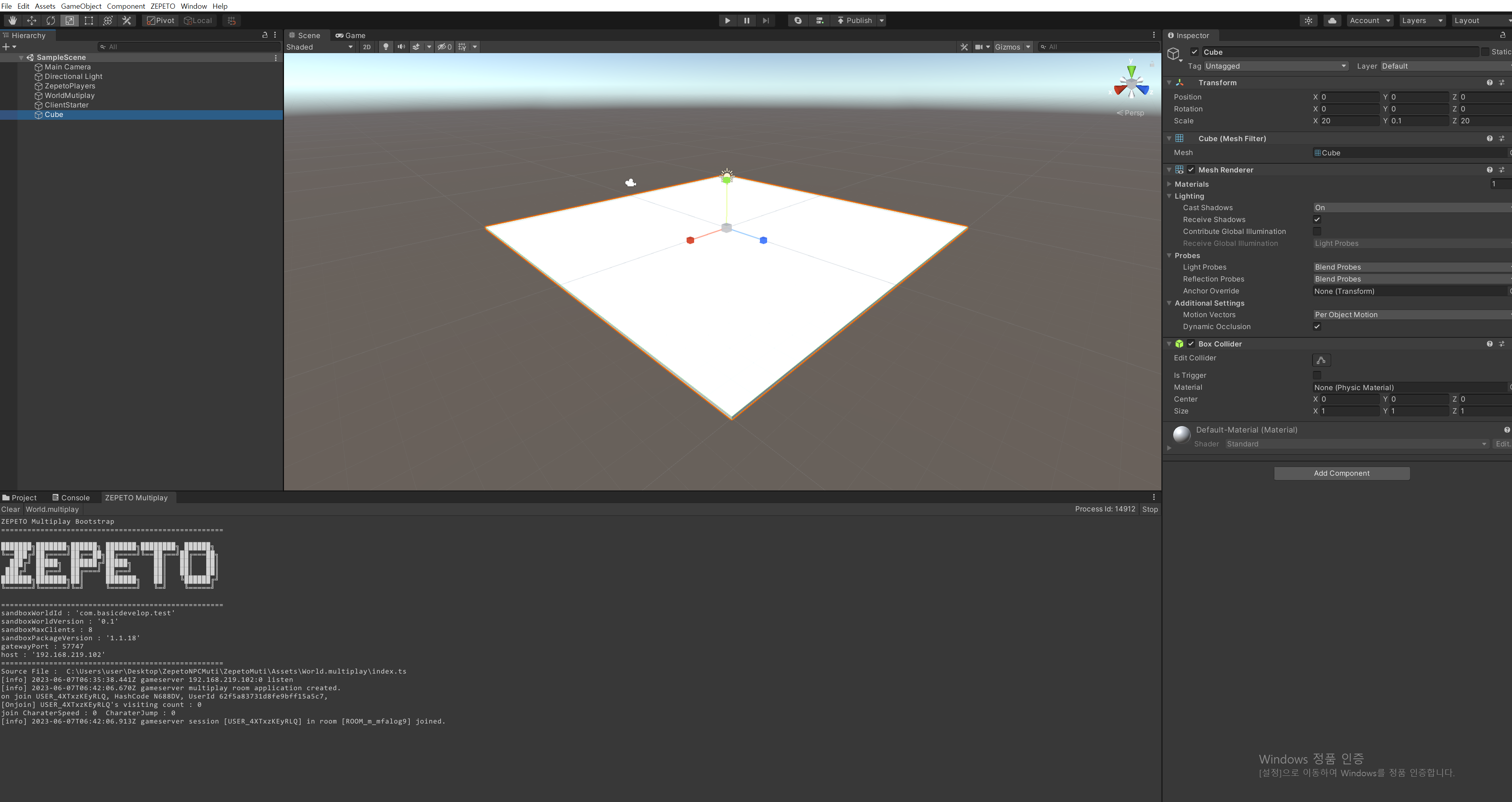제페토 공식 멀티 플레이 환경 세팅 가이드 라인은 아래 링크에서 참고할 수 있으며 아래 글 내용은 유튜브 영상을 요약한 내용입니다. (https://docs.zepeto.me/studio-world/lang-ko/docs/multiplay_tutorial)