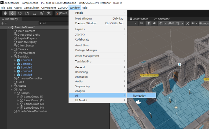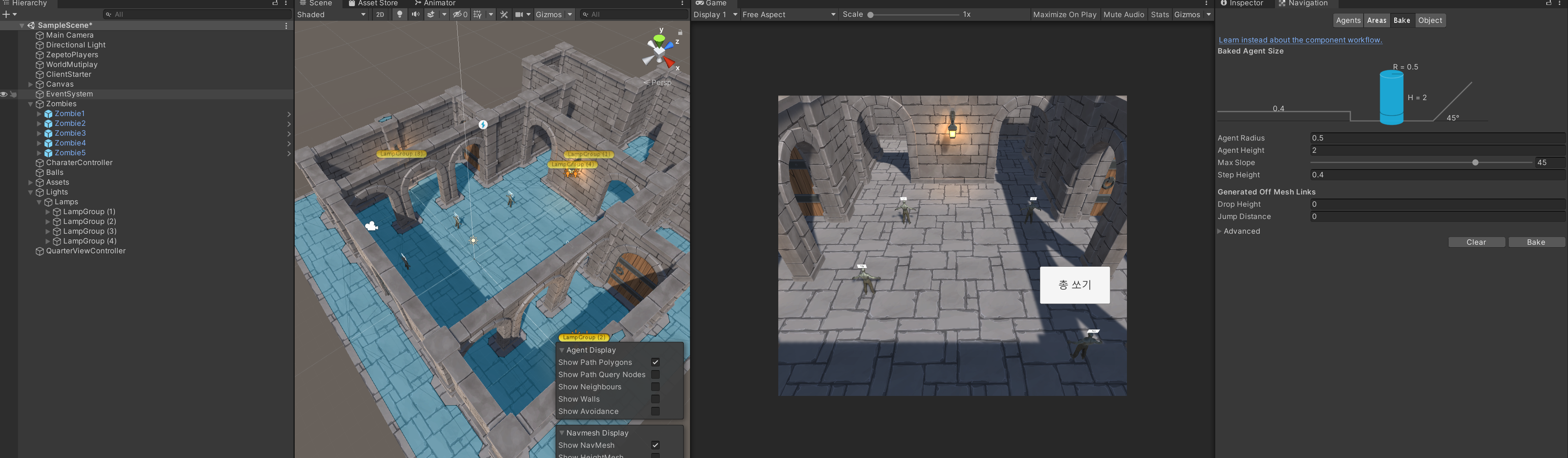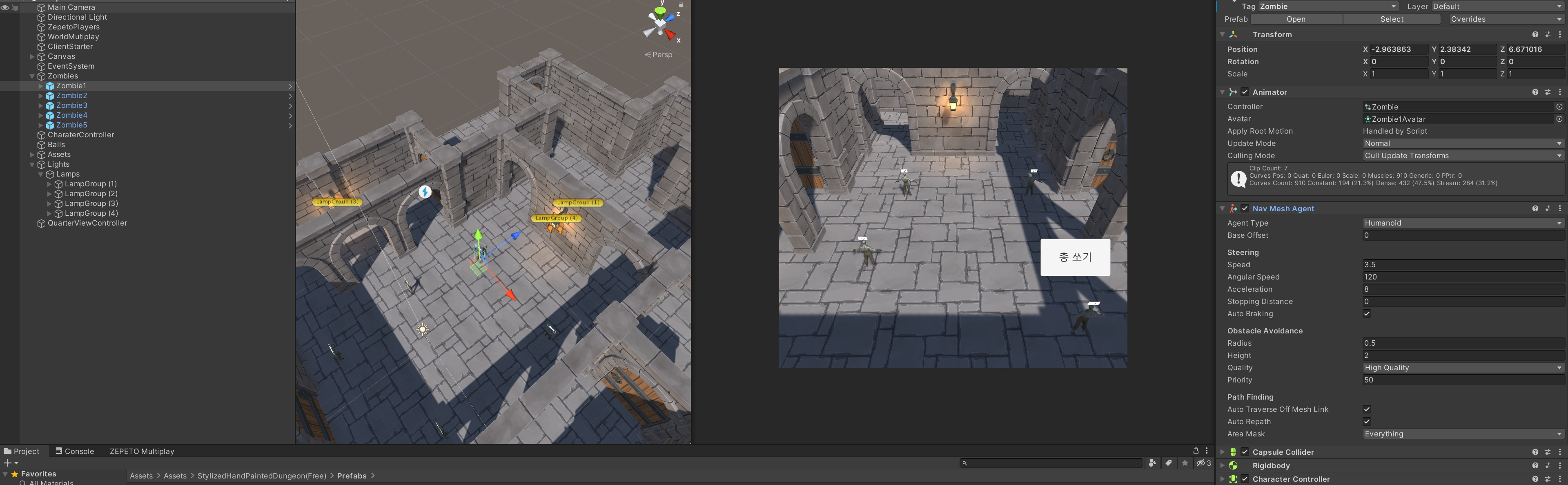NavMesh Agent 스크립트 부착 및 아래 관련 코드 작성 (Zombie.ts)