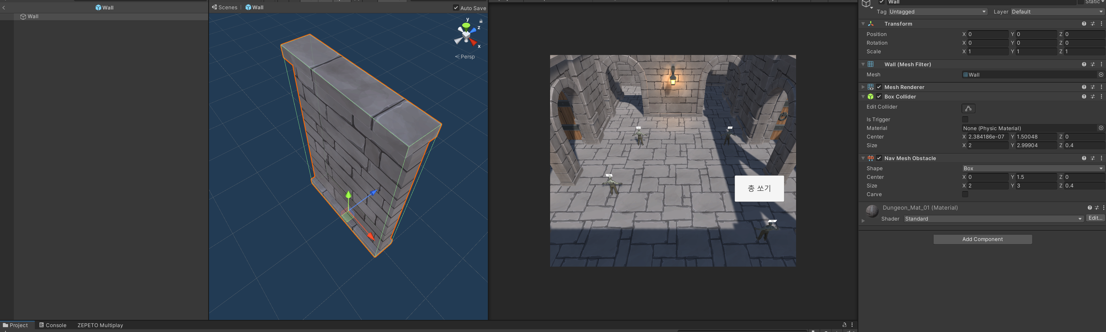 Nav Mesh Obstacle 스크립트 붙이기 이후에 Map Bake 하면 자동으로 지나갈 수 없는 길 처리가 됨