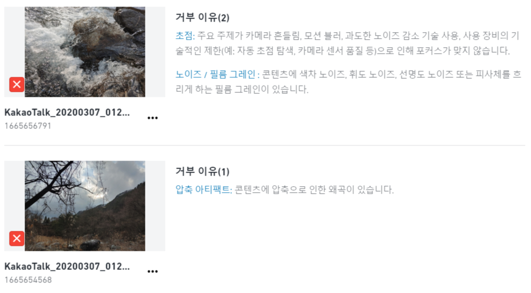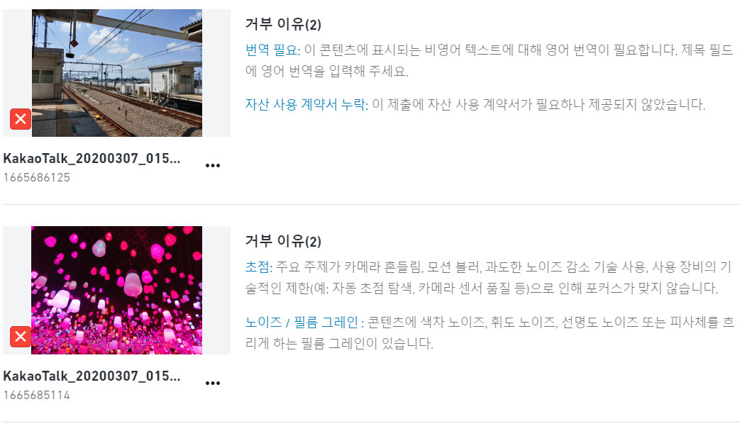 하지만 생각보다 사진 승인이 까다롭습니다. 밑에는 제가 올린 사진들 승인 거절 사유 모음들입니다.