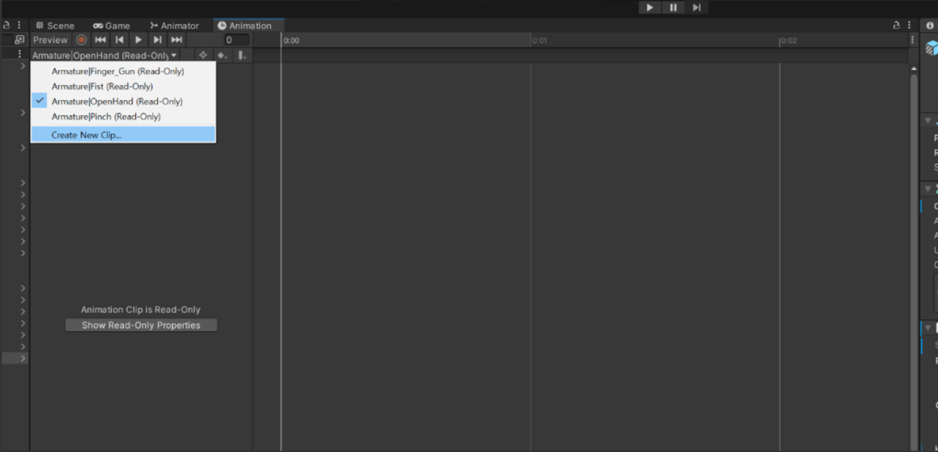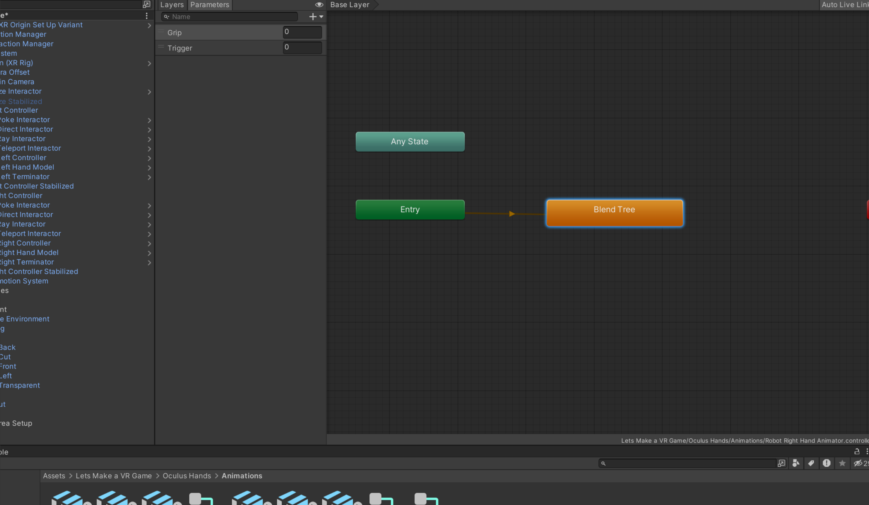 이렇게 기계 손에 대한 애니메이션을 수정해주었다면 다시 돌아가서 Animator 에 넣어줍니다. 오른쪽, 왼쪽 애니메이션이 똑같이 때문에 똑같이 넣어주면 됩니다 (현재 사진 내에서는 이름을 right 라고 적었지만 실제로는 공용입니다.)