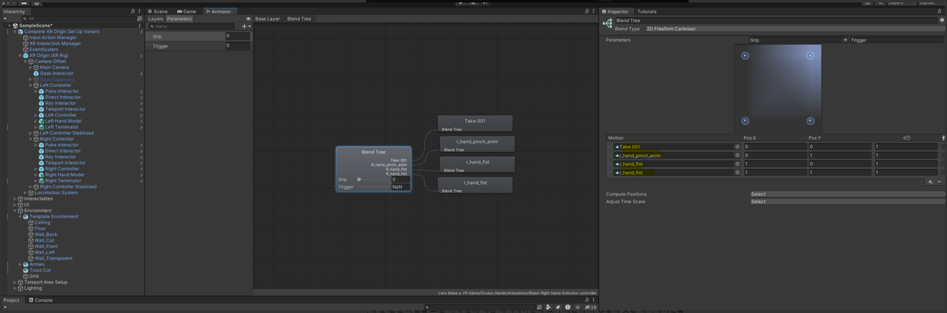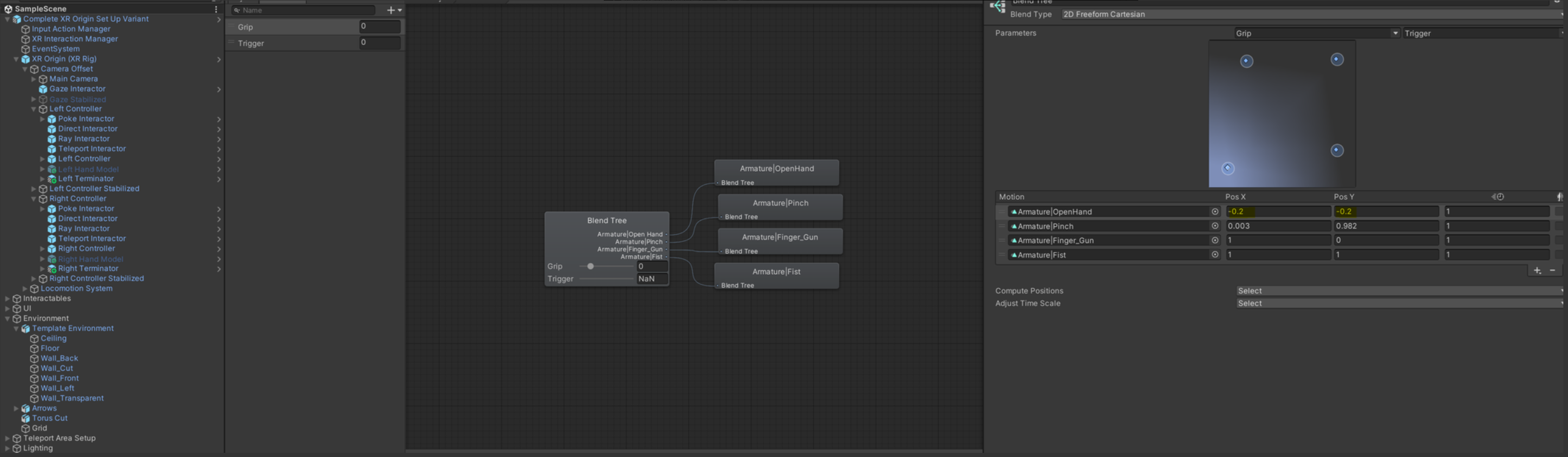 그 밖에는 위에서 수정했던 Blend Tree 설정에서 posX, Y, Z 를 조정하는 방법도 있습니다.