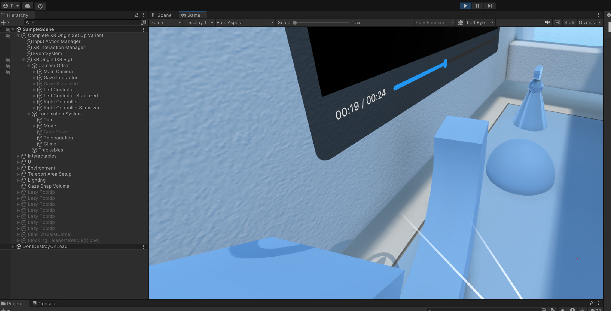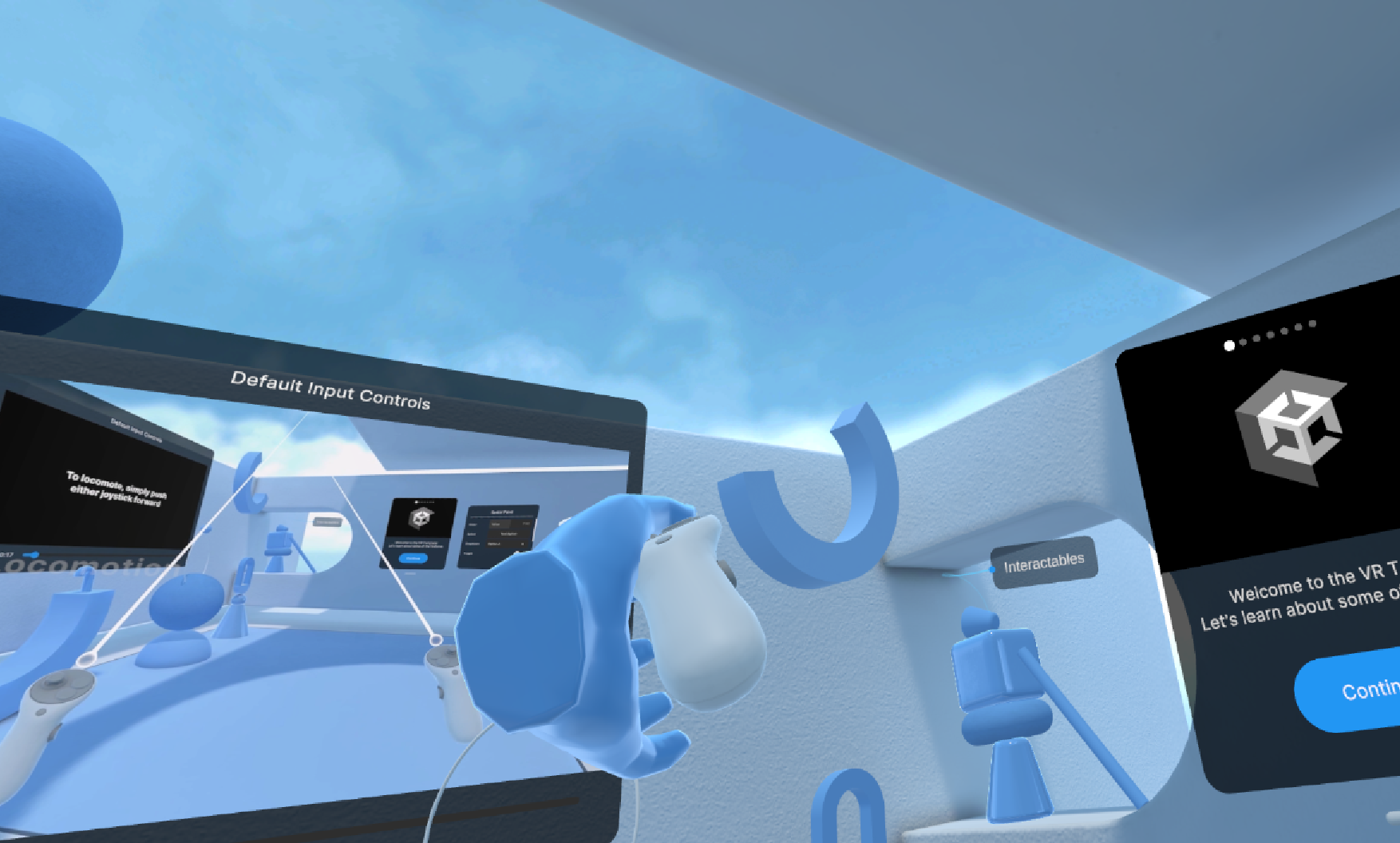 위에서 정상적으로 연결되었다면, 유니티에서 play 했을 때, VR 기기 내에서 유니티 화면이 보이면 컨트롤러 등 사용하실 수 있는 것을 확인할 수 있습니다.