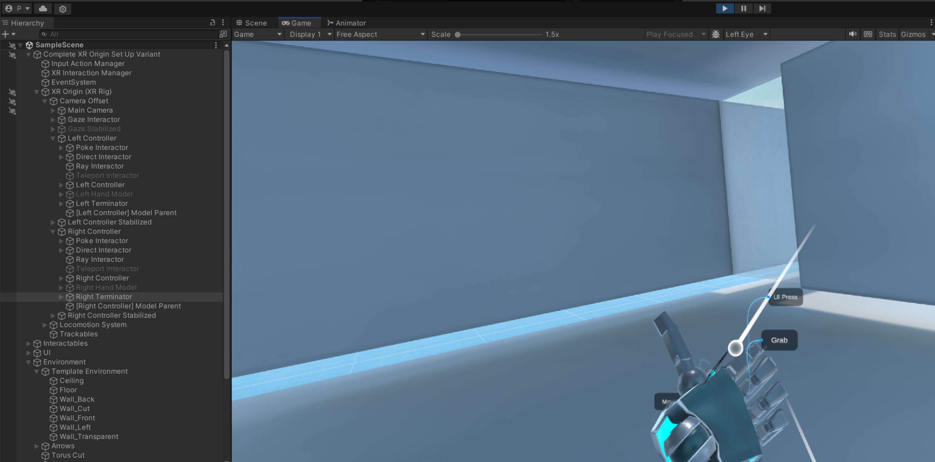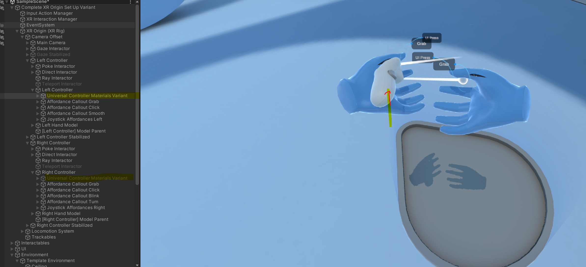 현재 위에서는 고무 장갑과 컨트롤러가 같이 뜨는데 컨트롤러 모델링을 없애고 싶으시다면 사진에 보이듯이 controller 안에 있는 universal ~ 이 부분을 비활성화 하면 됩니다.