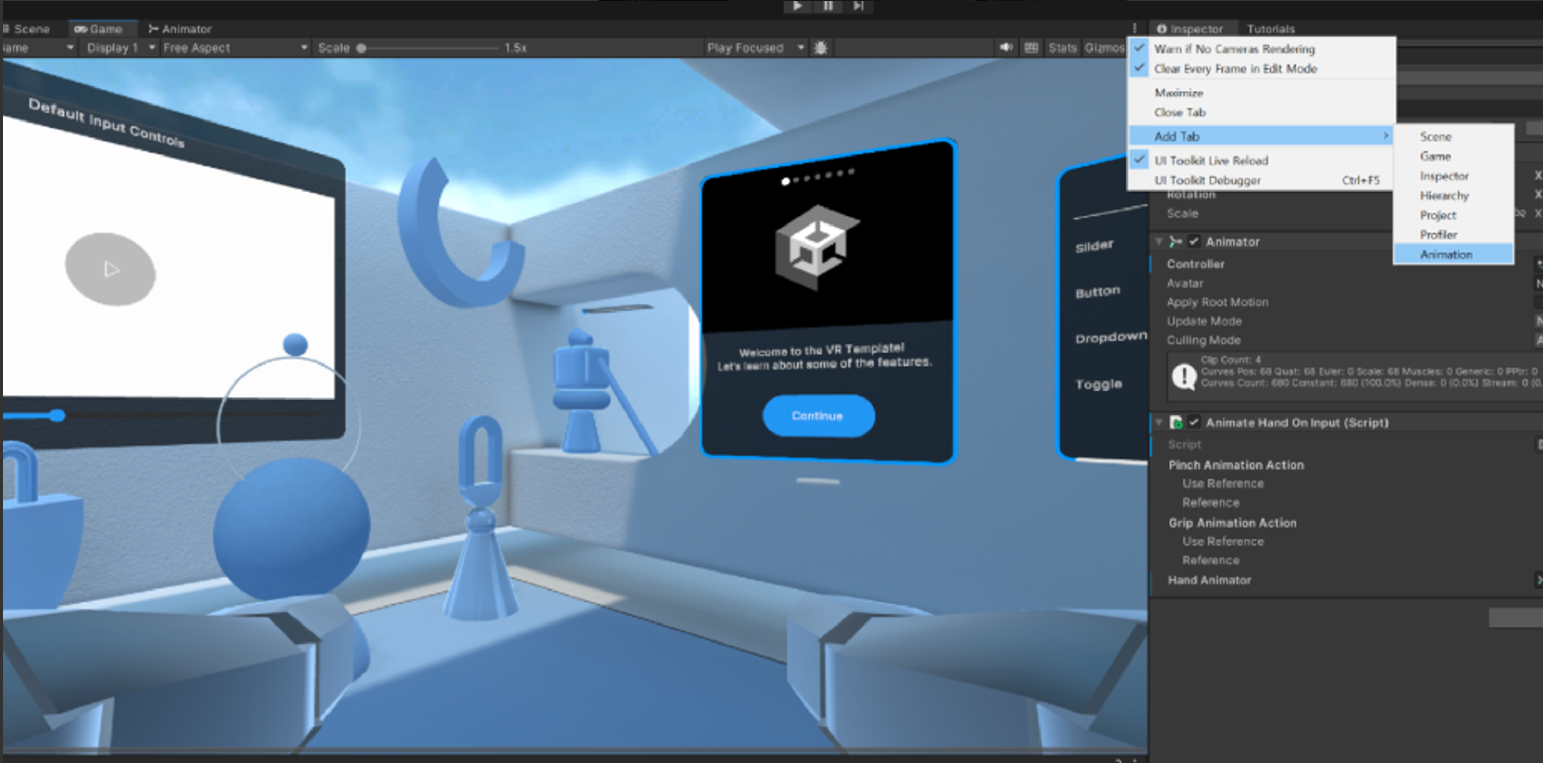 테스트 결과, 사진처럼 손에 고무 장갑이 생기고 손 움직임에 따라 애니메이션이 적용되는 것을 확인할 수 있습니다.