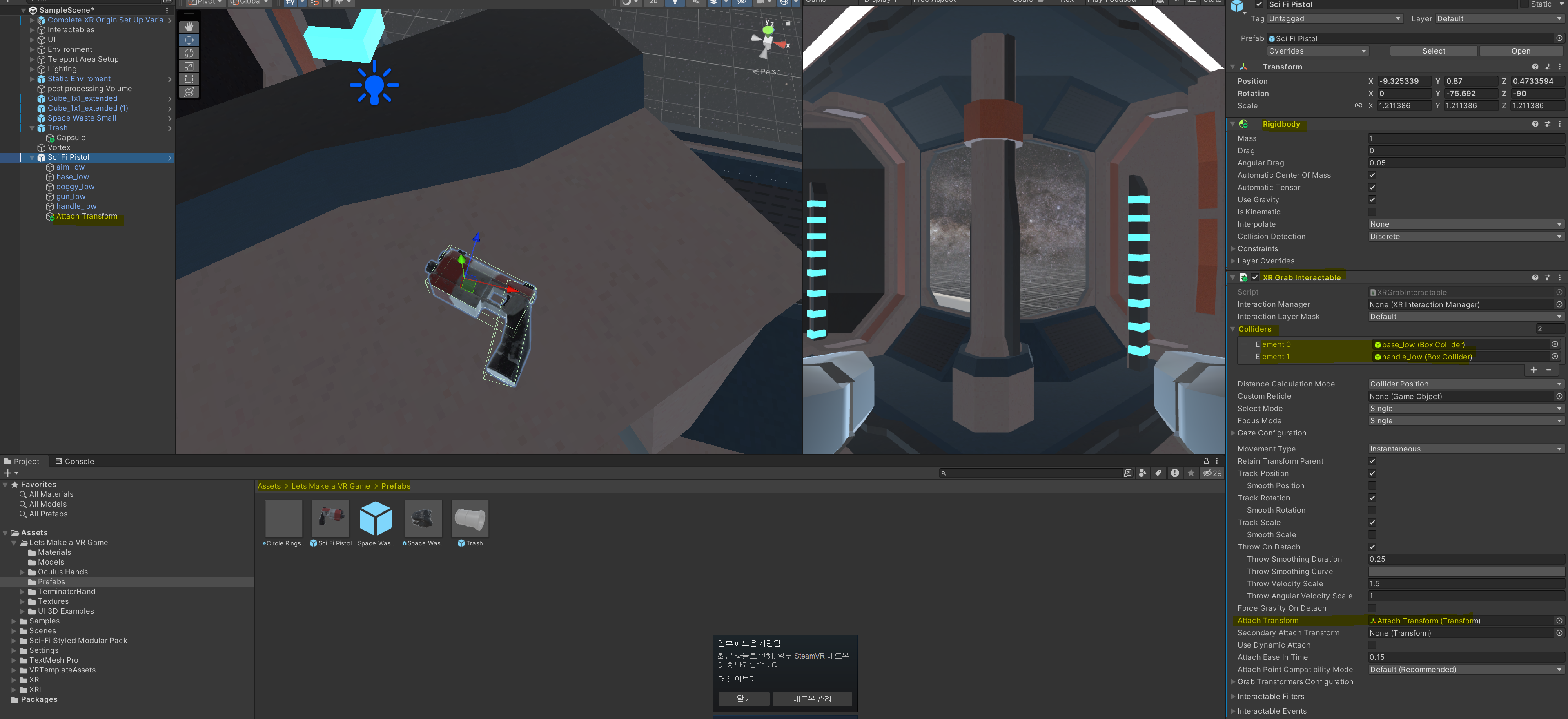 1. VR Controller와 트리거 상호작용 물체 만들기 (레이저 총 만들기)