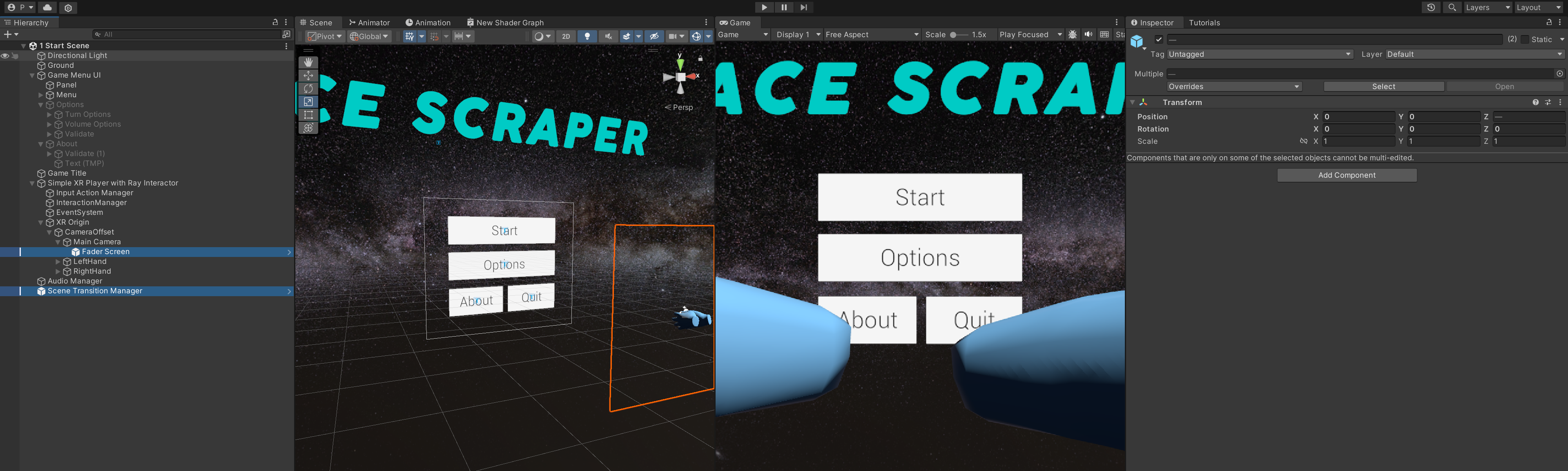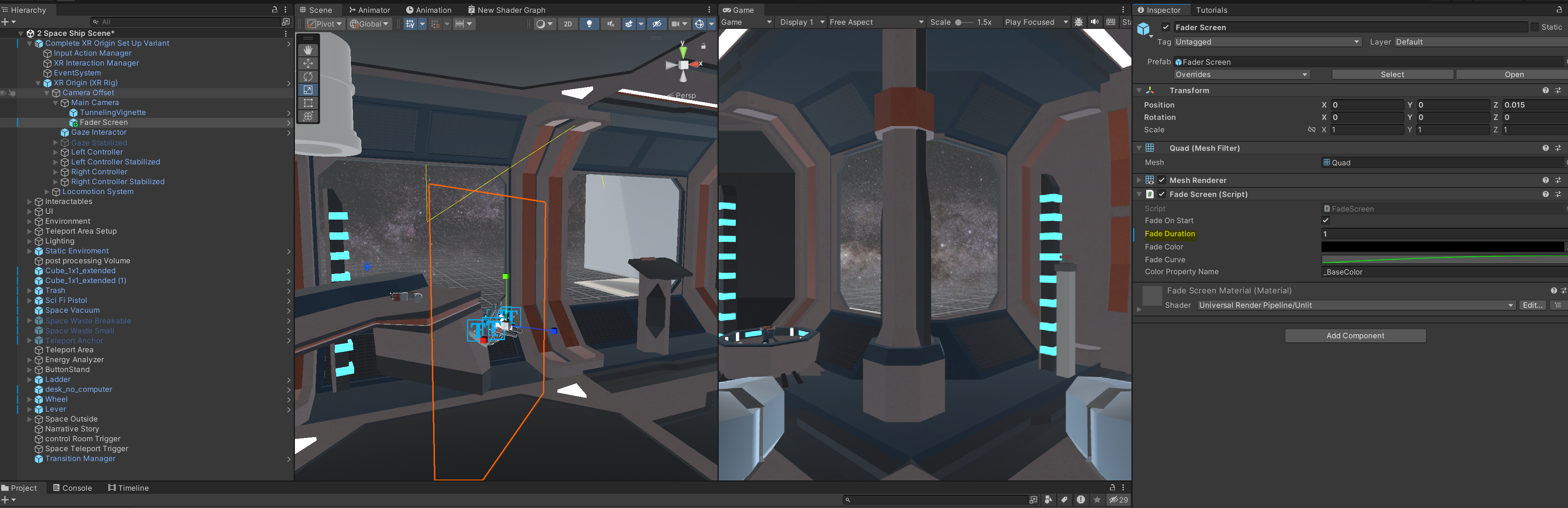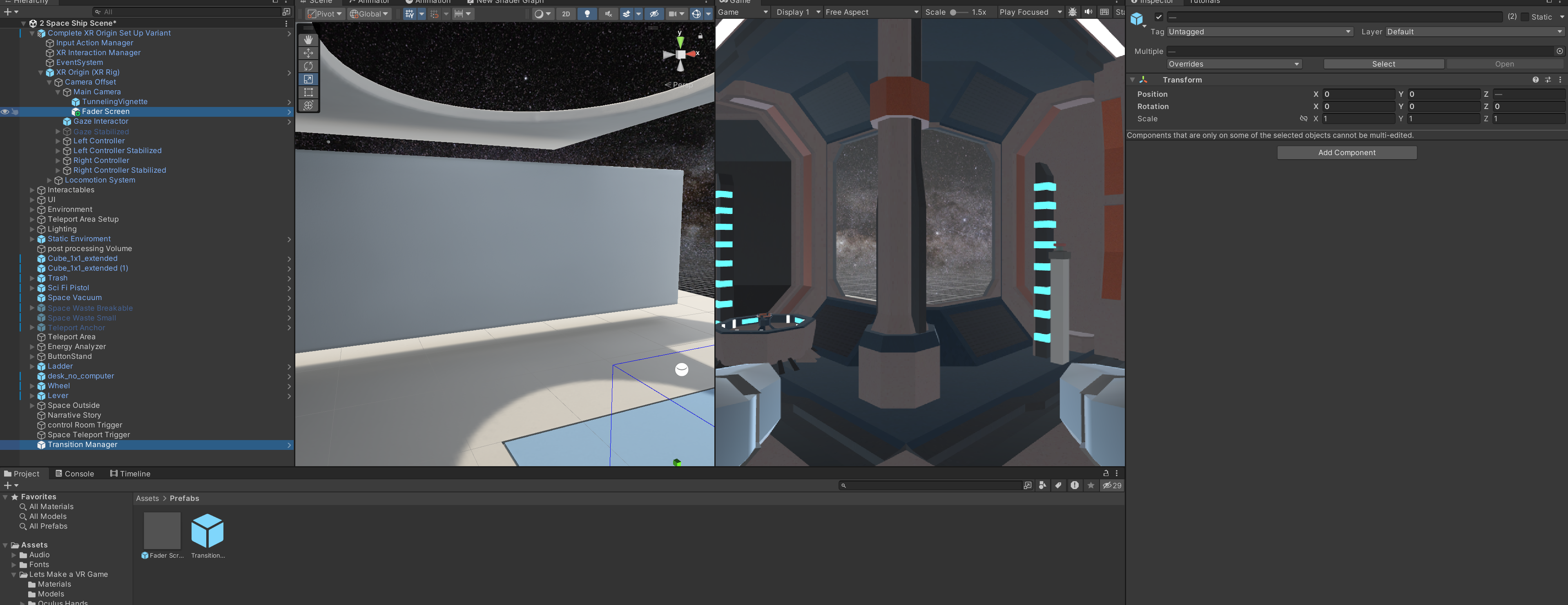 해당 씬을 실행하면 화면이 검어지고 넘어가는 장면이 있는데 해당 장면을 기존에 만든 씬에서 튜토리얼이 끝나면 다시 이곳으로 돌아올 때도 사용할 수 있게 아래의 두 오브젝트를 복제해서 가져가고자 합니다.