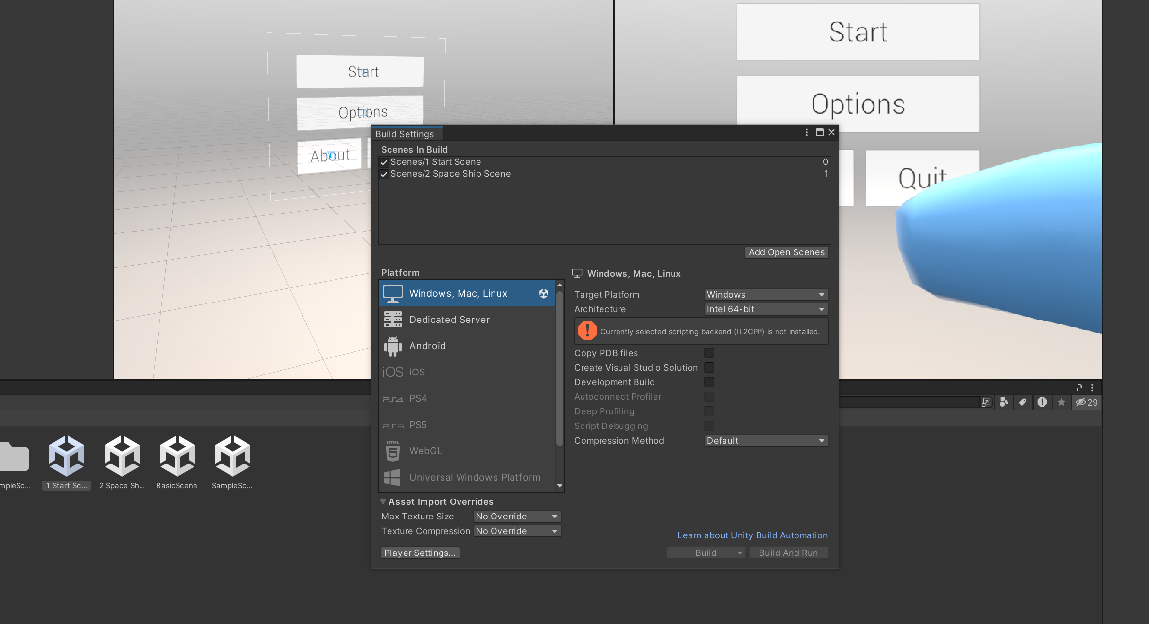 scene 을 이동하기 위해서 build setting 에서 해당 씬을 첫 번쨰로 등록해줍니다.
