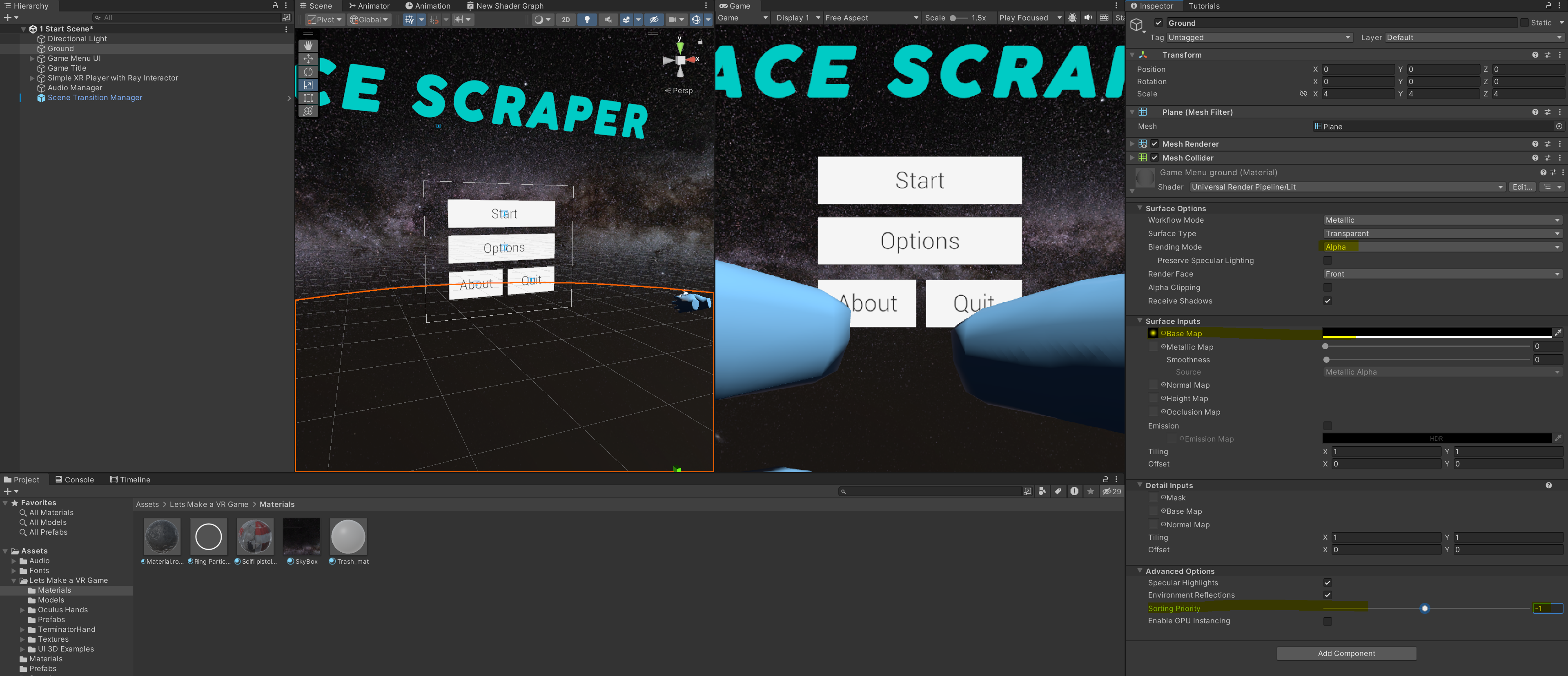 배경을 우주로 바꾸기 위해 전에 만든 sky box를 넣어주고 바닥을 아래와 같이 설정해서 바꿔줍니다.