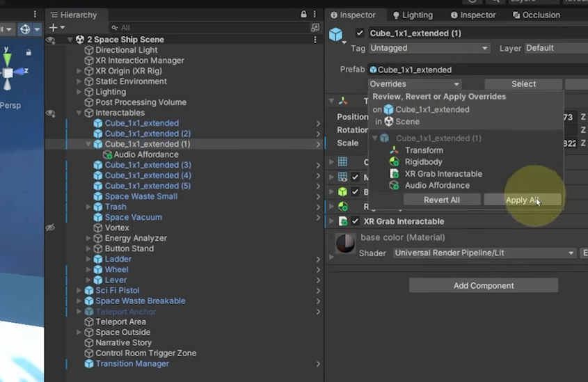 추가적인 팁으로는 아래와 같이 설정하면 현재 프리팹에서 추가된 설정이 기본 설정이 될 수 있도록 바꿔 줄 수 있습니다.