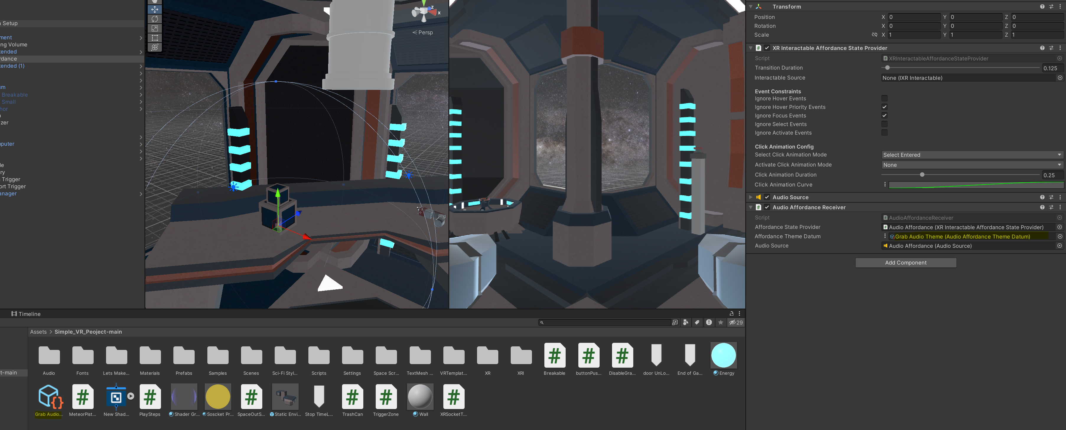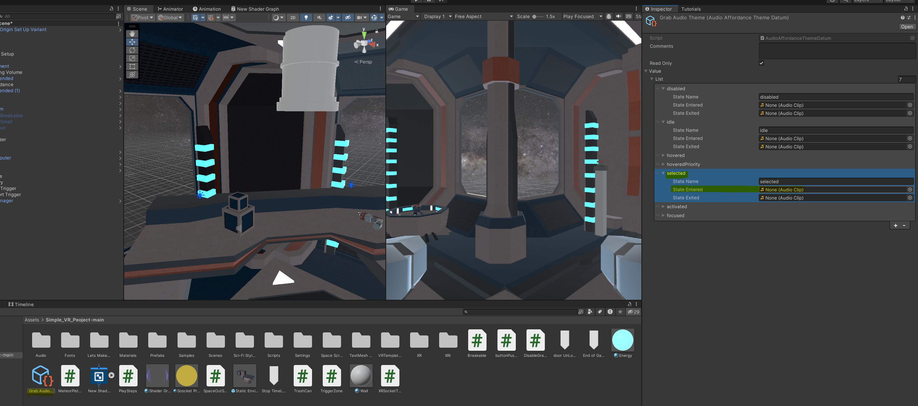 저희는 특정 물건을 선택했을 때, 효과음이 나길 원하기에 grab audio theme 이라 이름을 붙여주고 selected 할 때 특정 소리가 나도록 넣어줍니다.