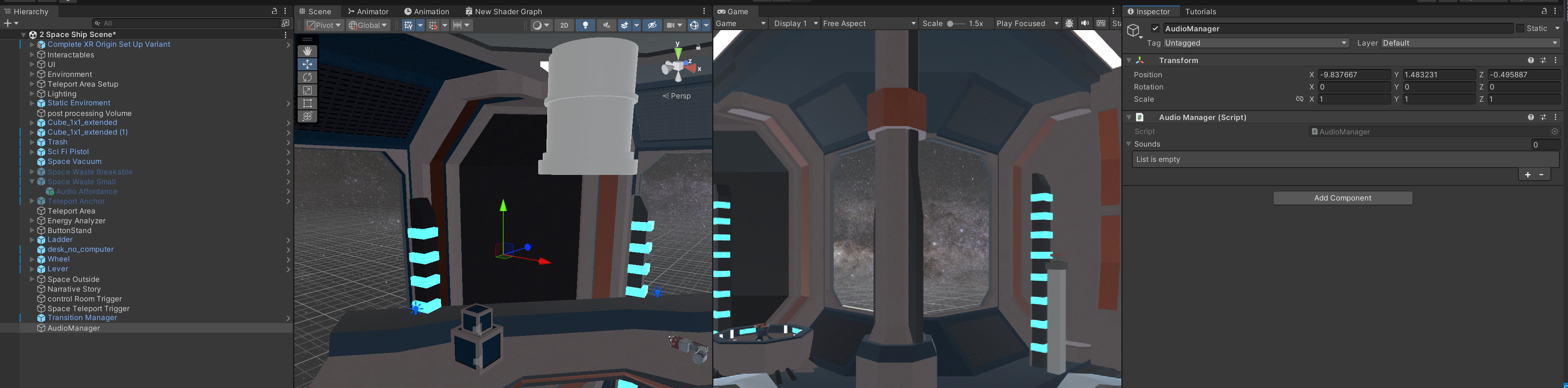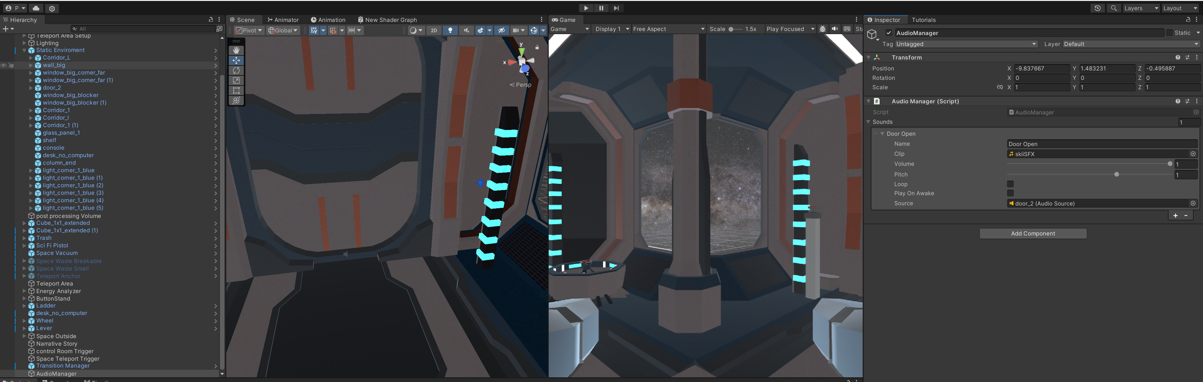 그 다음으로 컨트롤러와 상호작용하는 물체 외 효과음(문 열리는, 엔진) 등을 편하게 넣기 위해