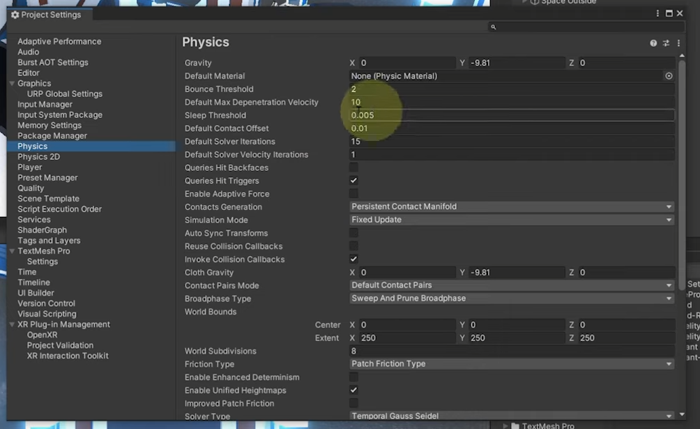 프로젝트 세팅에 들어가서 해당 값들을 조정할 수 있습니다.