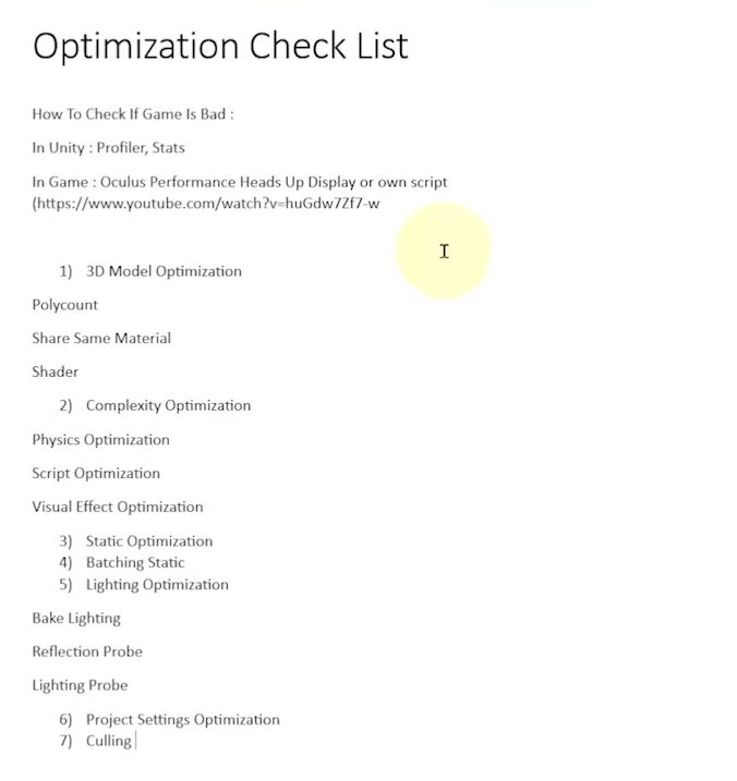 최적화 하기 위해 체크 리스트를 영상에서 제공했습니다.