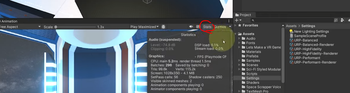 또는 아래의 버튼을 눌려서 fps 등을 확인할 수 있습니다.