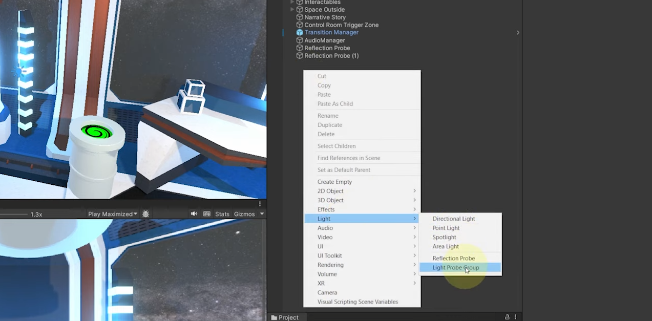 아래와 같이 light probe group 을 생성해줍니다.