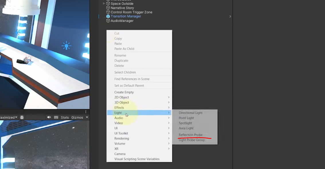 baked 하기 위해 아래와 같이 반사 오브젝트를 설정해줍니다.