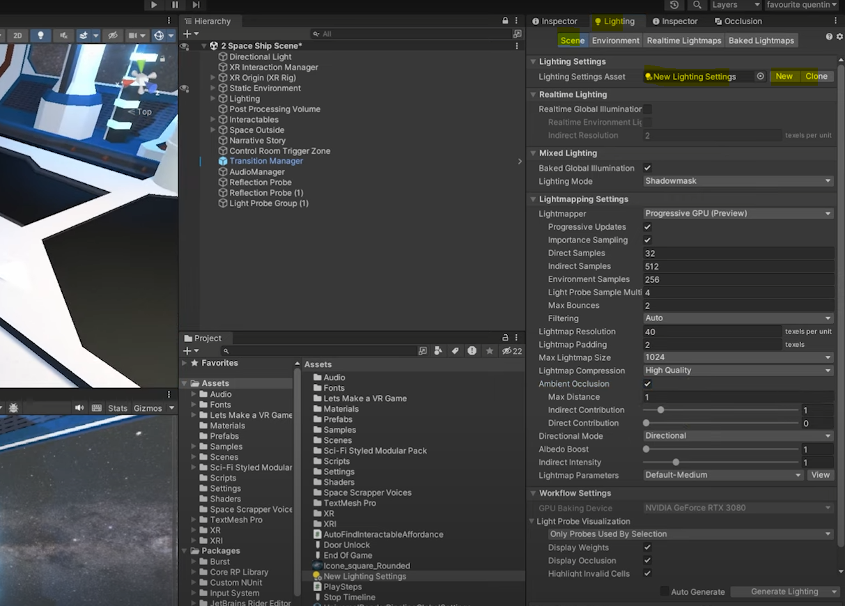 click Generate Lighting button 클릭하면 빛이 bake 된 것을 확인할 수 있습니다.