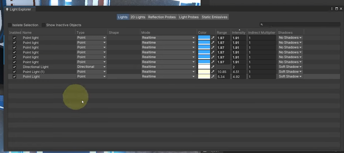 모든 빛에 대해 관리할 수 있는 창이 뜹니다.