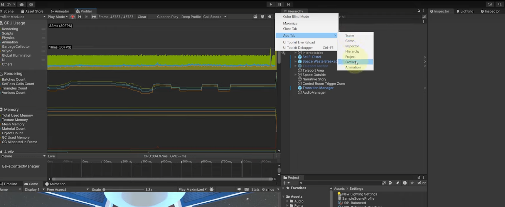 최적화를 하기 전에 어떤 부분에서 소비가 일어나는지 확인하기 위해 아래와 같이 프로파일러를 통해 확인할 수 있습니다.