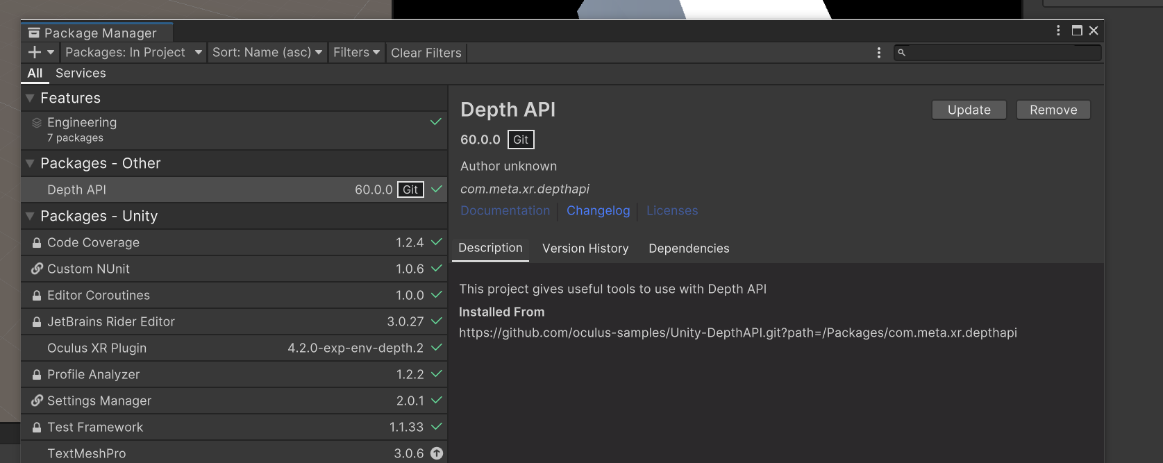 이제 meta 에서 제공하는 depth 관련 제공 api를 받아옵니다.