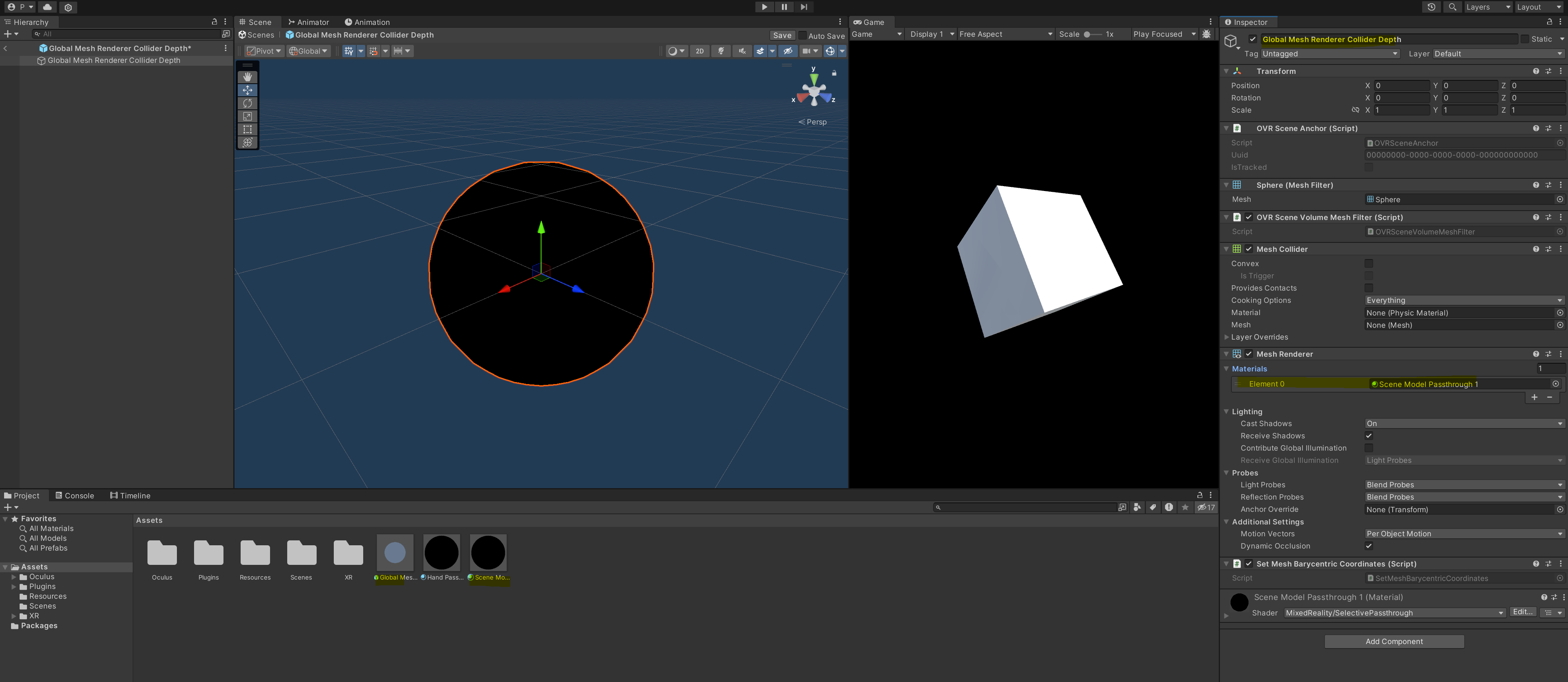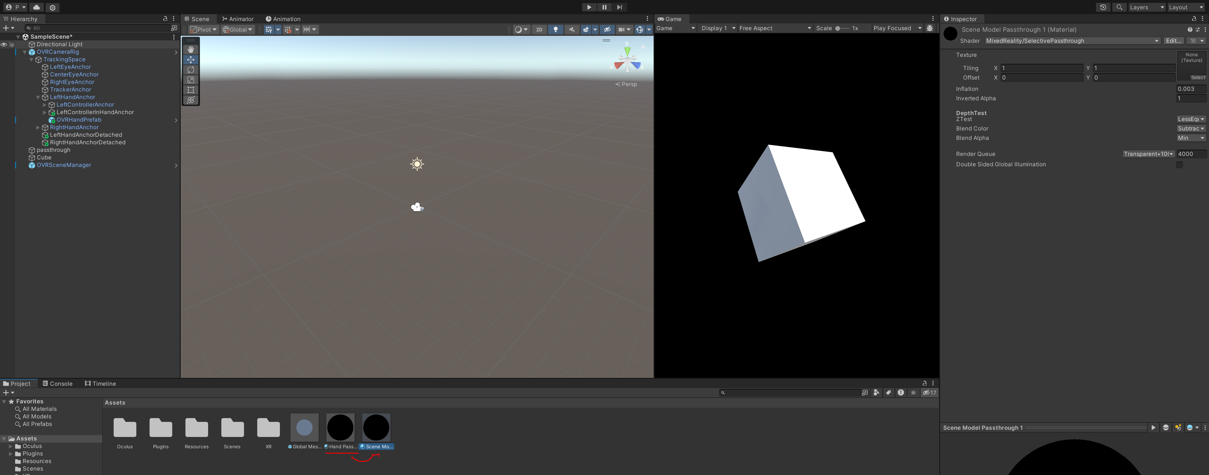이번 내용에 대해서는 저도 정확하게 이해하기 어려웠지만 대략 내용을 봤을 때는 shader + 깊이 파악을 통해 오브젝트 위에 손을 올려놓았을 때, 앞인지 뒤인지 구분하여 오브젝트가 가려질지 말지 렌더링해주는 방법에 대해 이야기하는 것 같습니다.