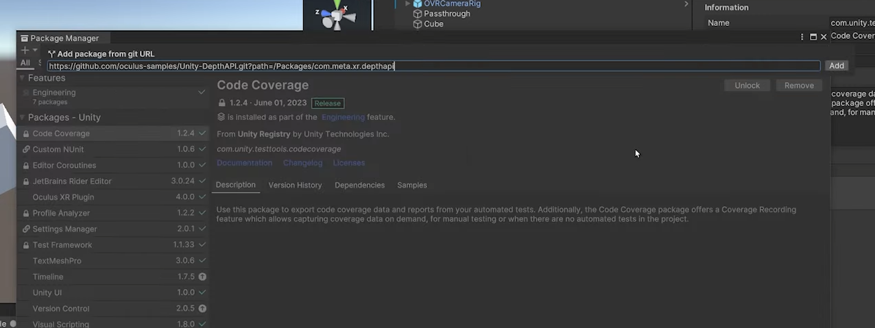 https://github.com/oculus-samples/Unity-DepthAPI