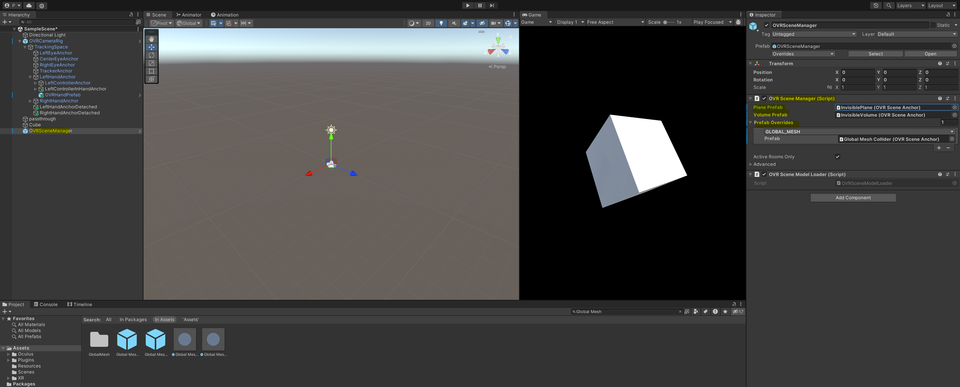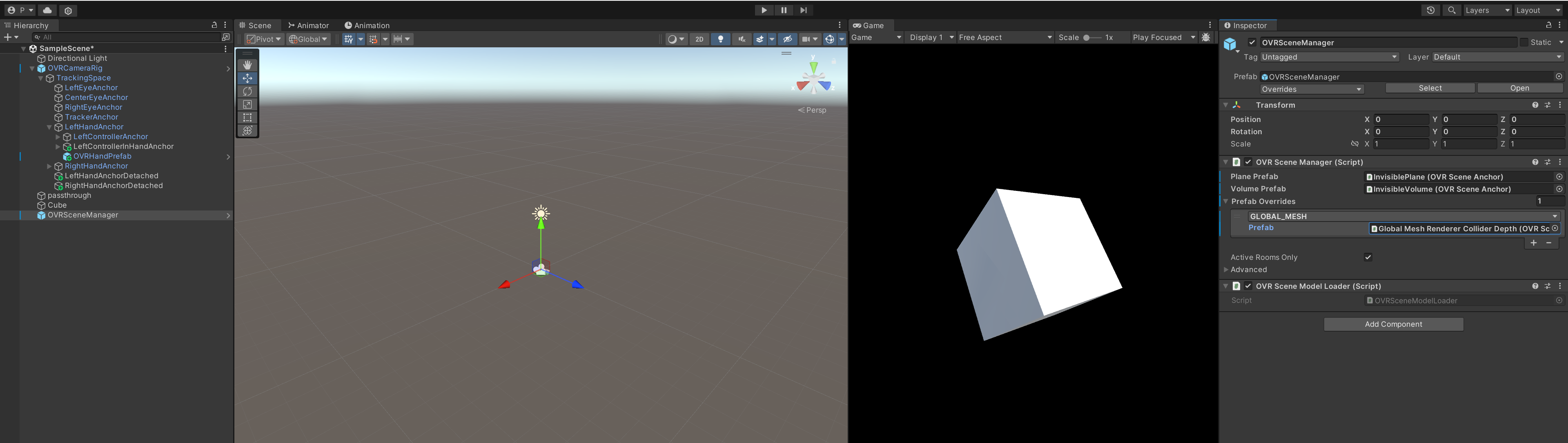 그리고 위에서 세팅한 프리팹을 OVRSceneManager > prefab overrides 에 넣어줍니다.